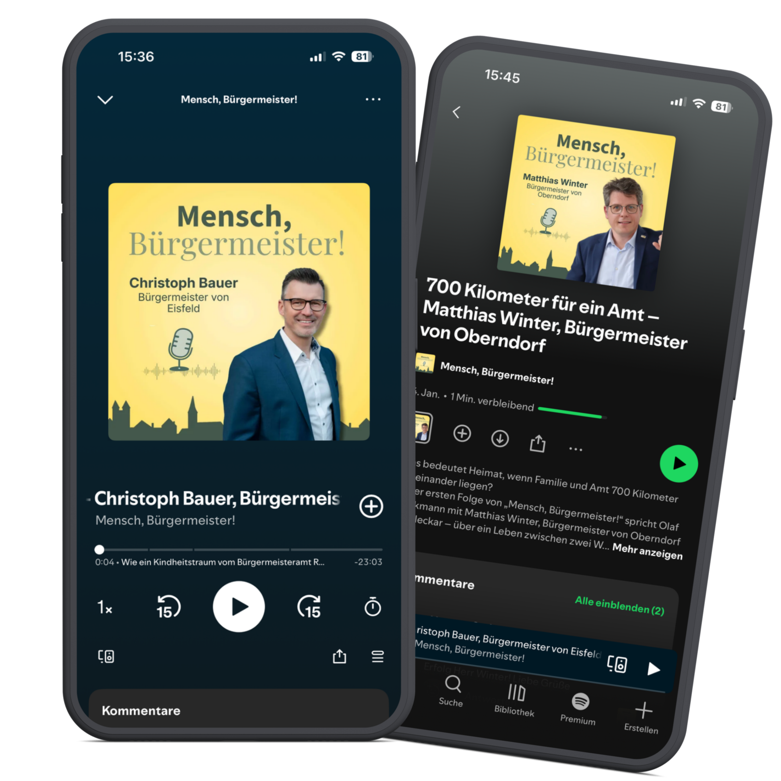 In Deutschland gibt es fast 11.000 Bürgermeisterinnen und Bürgermeister – aber wer sind die eigentlich? Wie ticken sie? Was treibt sie an? Der Podcast „Mensch, Bürgermeister!“ geht genau diesen Fragen nach und zeigt die Persönlichkeiten hinter dem Amt – die Menschen!